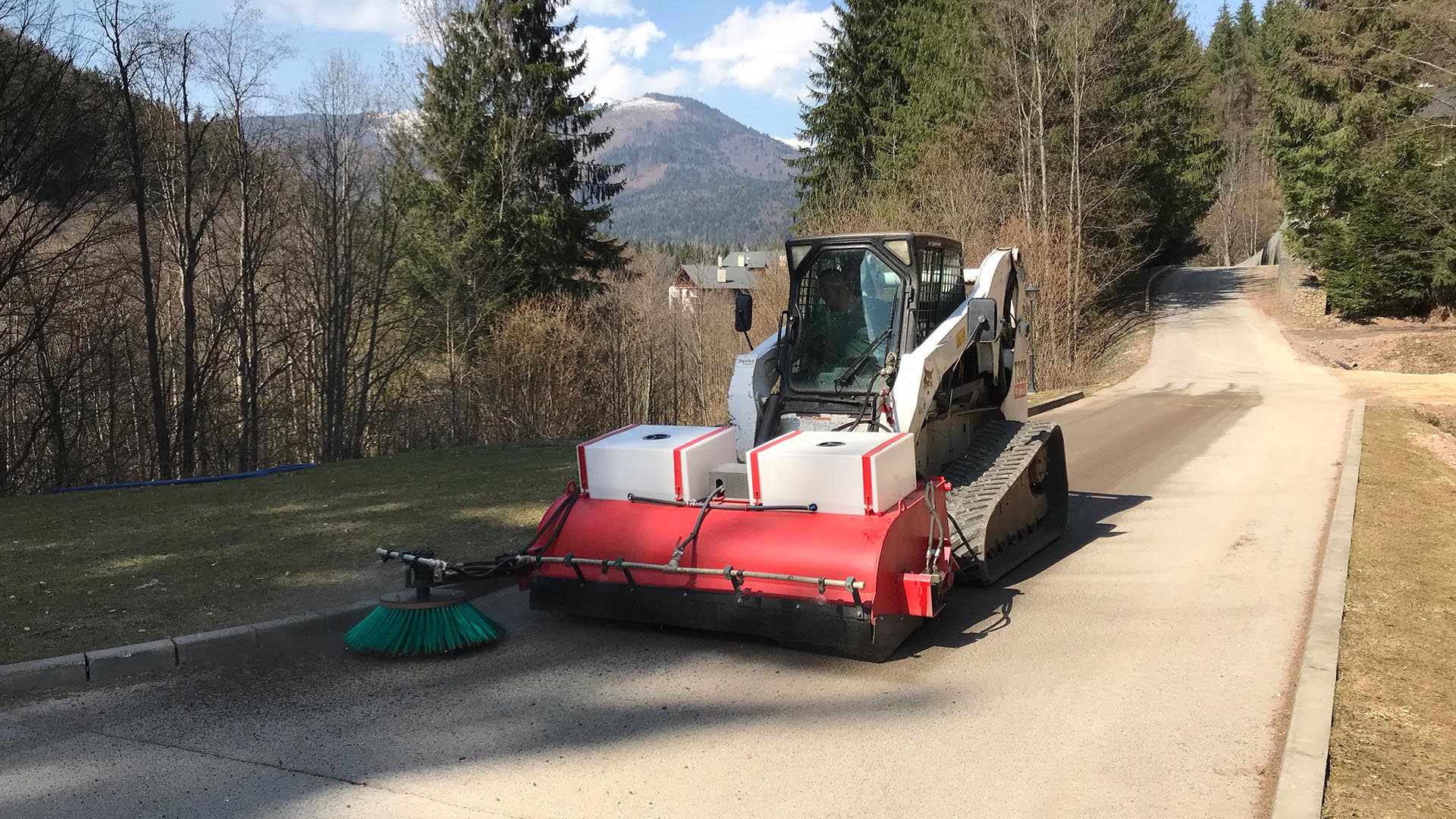 Čistač sa sakupljačem otpada je određen za trase, terene, parkirališna mjesta i druge prostore za metenje od smeća i prljavštine do sakupljača otpada i trenutni utovar na transportno vozilo.